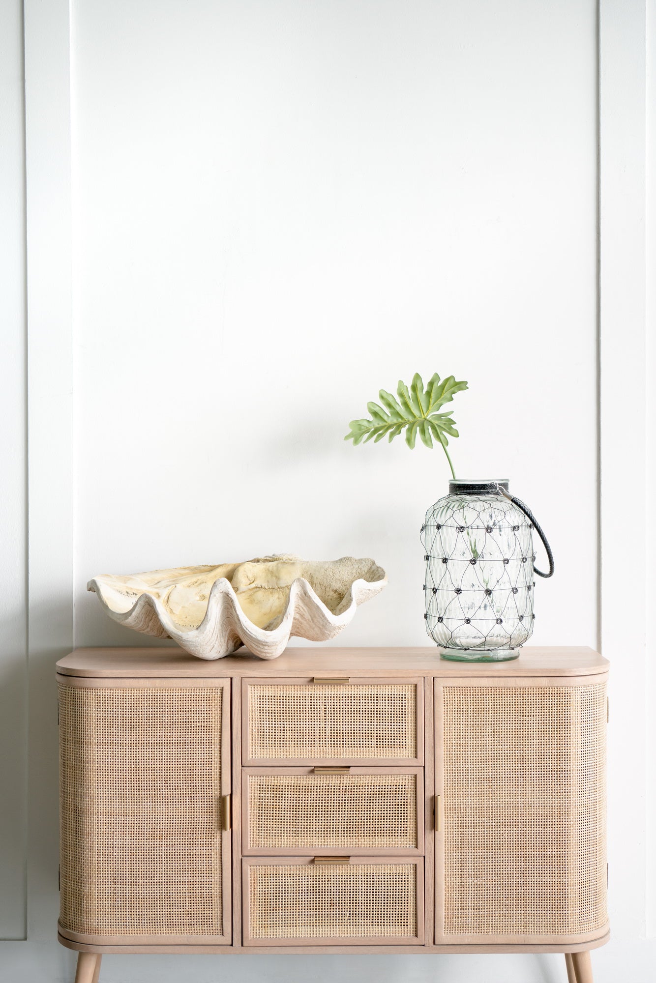 This Clam Shell adds a touch of spice to any room. Its unique and eye-catching design will elevate your space. Made from durable materials, it is both functional and stylish. Perfect for any coastal or beach-themed decor.